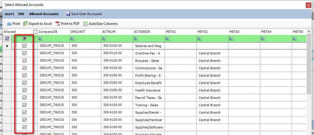 ii) All New Budget Account Numbers for newly added OrgUnit/s (see Add OrgUnits) for CompanyDB/s for which the User has permission/s;  the AutoSynch automatically gives the User permission to the newly added OrgUnit/s.  These permissions are standardized by the User's Role as follows: