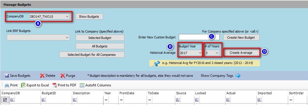16. To Create an Historical Average to use for Spreading (see C. of this article) a budget according to the calculated average: