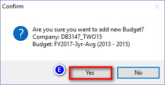 E. Click "Yes" to continue to create the average and a new BudgetID will be created which is based on the selected criteria In our example, the name of the BudgetID is "FY2017-3yr-Avg"